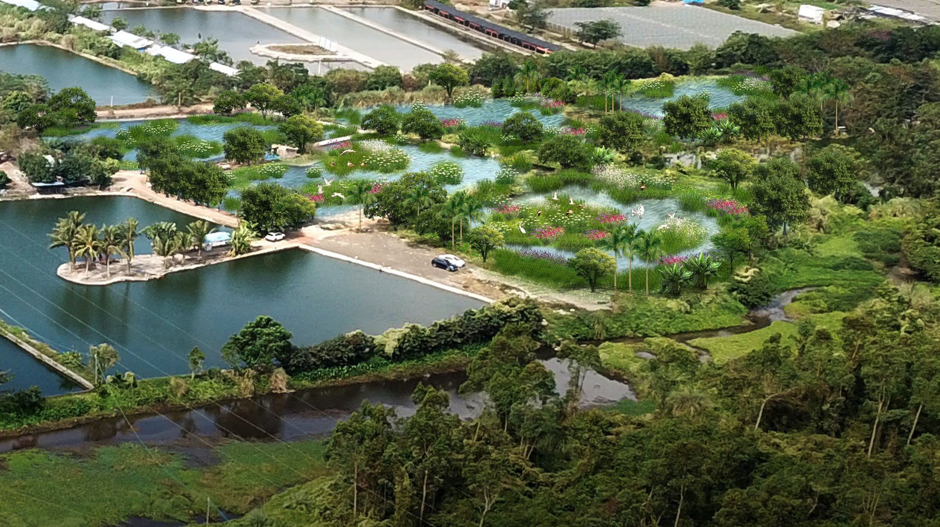 項目位于海南省??谑幸4蟮辣眰鹊纳嫌魏拥郎鷳B修復區以及椰海大道南側的濕地公園展示區和河源保育區。